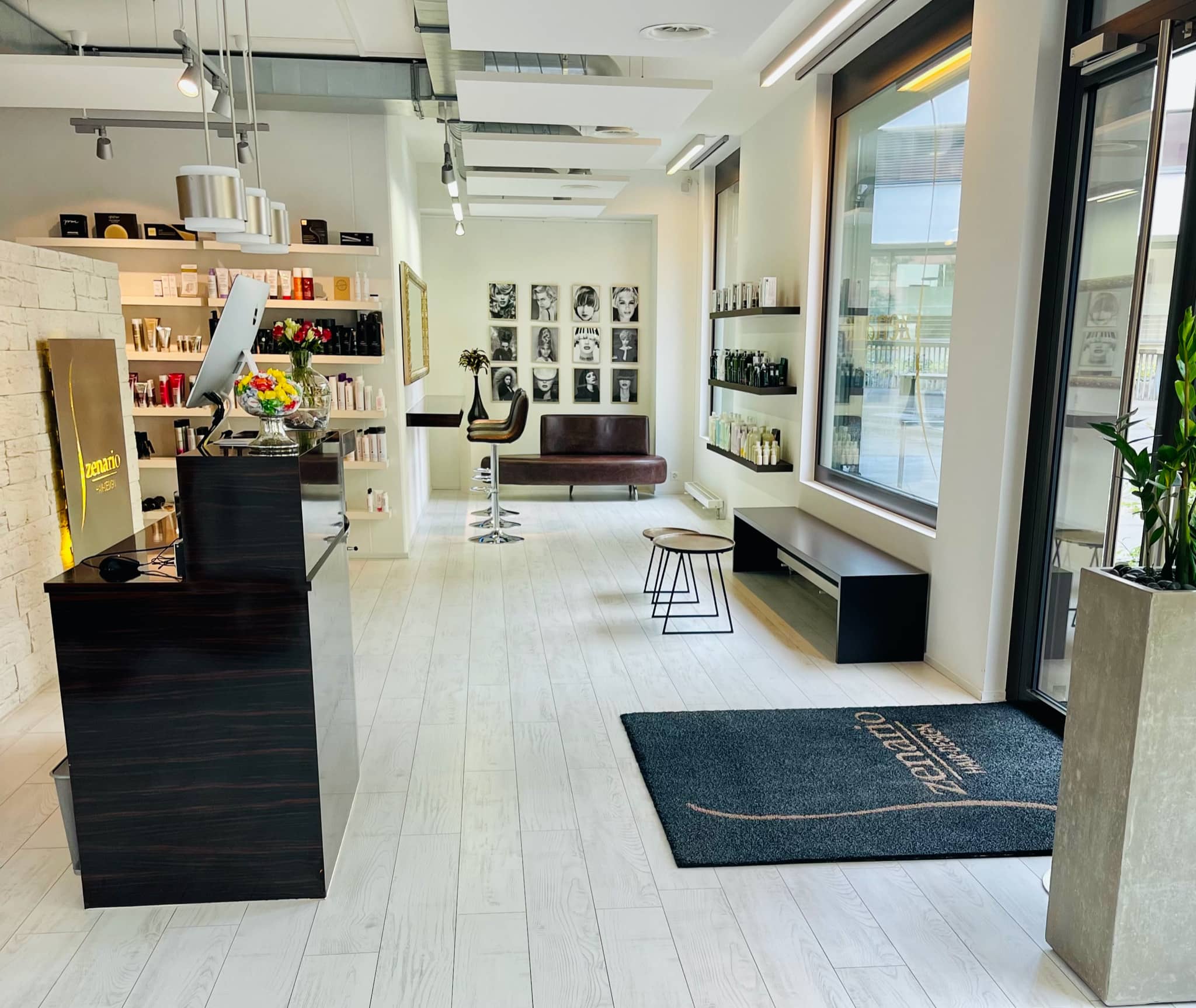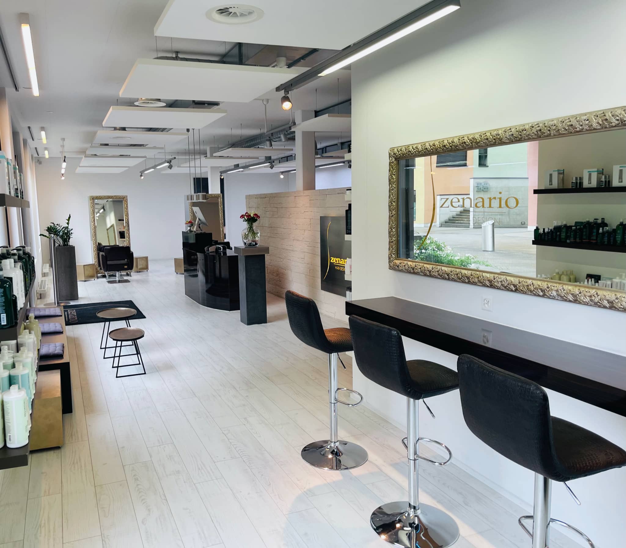 Ein grosszügig elegant eingerichteter Top-Salon, mit 6 Arbeitsstühlen, 4 Haarwaschbecken mit Massage-Stuhl und einem Bereich für Produkte, Make-up und Styling. Verschaffen Sie sich auf Instagram laufend Eindrücke von Kunden, Mitarbeitern und dem Tagesgeschäft von Szenario Hair-Design.